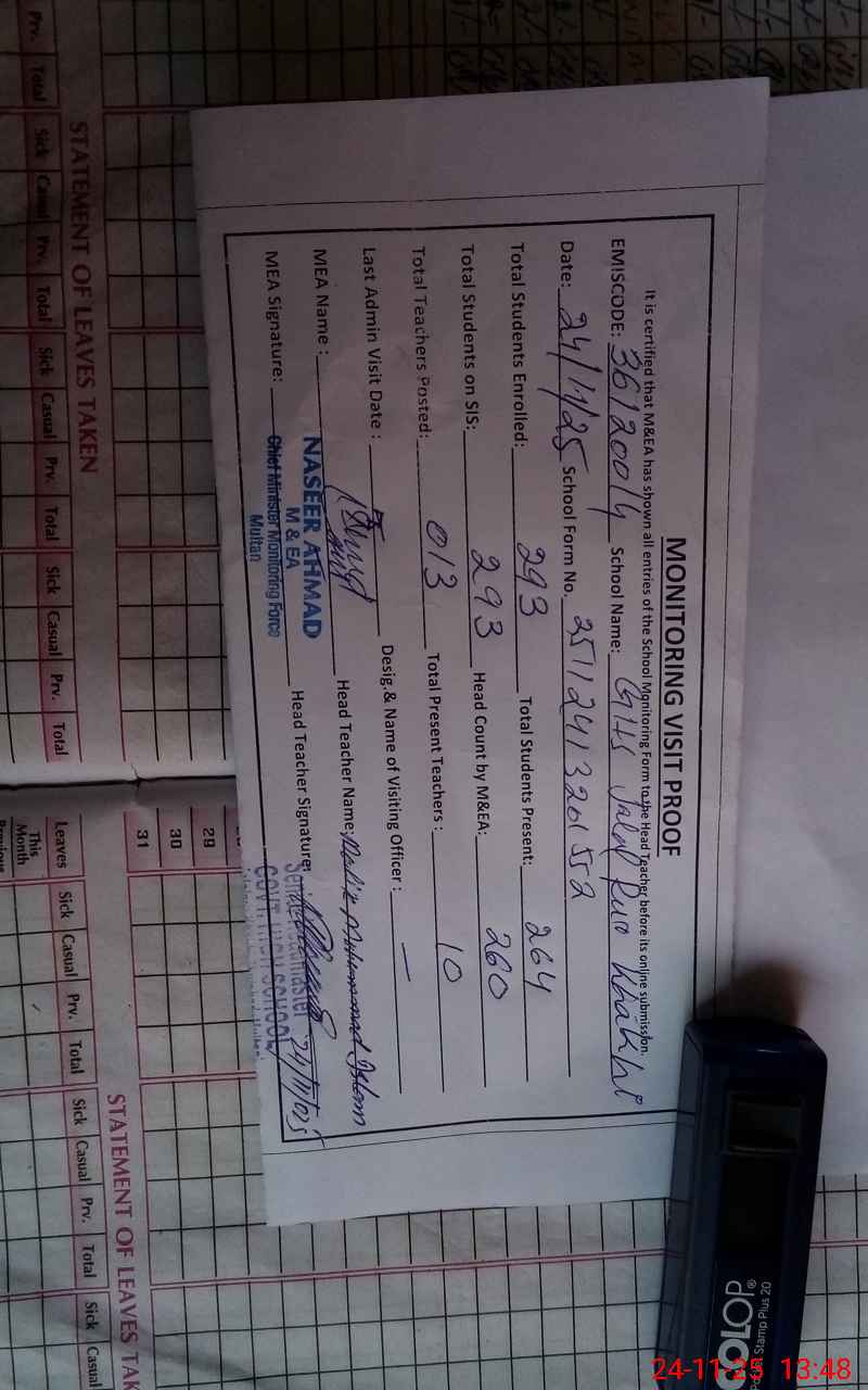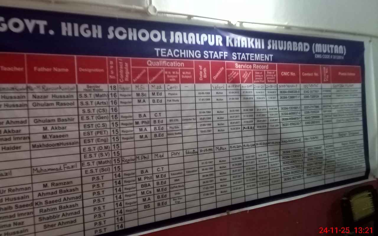 | EMIS Code: 36120014 | Name of School: GHS JALAL PUR KHAKI SHUJABAD | |||
