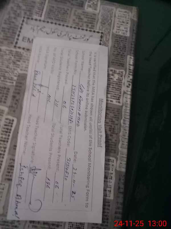 | Certified that this School was Inspected by the Undersigned MEA/DMO Today and the Information Stated Above is as Per Record. | |||||