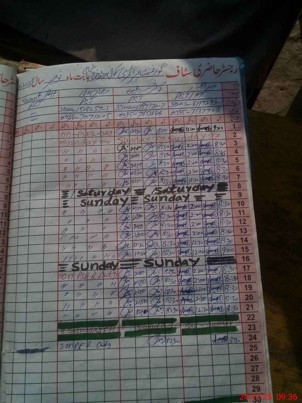| CNIC | Full Name | Designation | R/C | Absence During Last Calender Month |