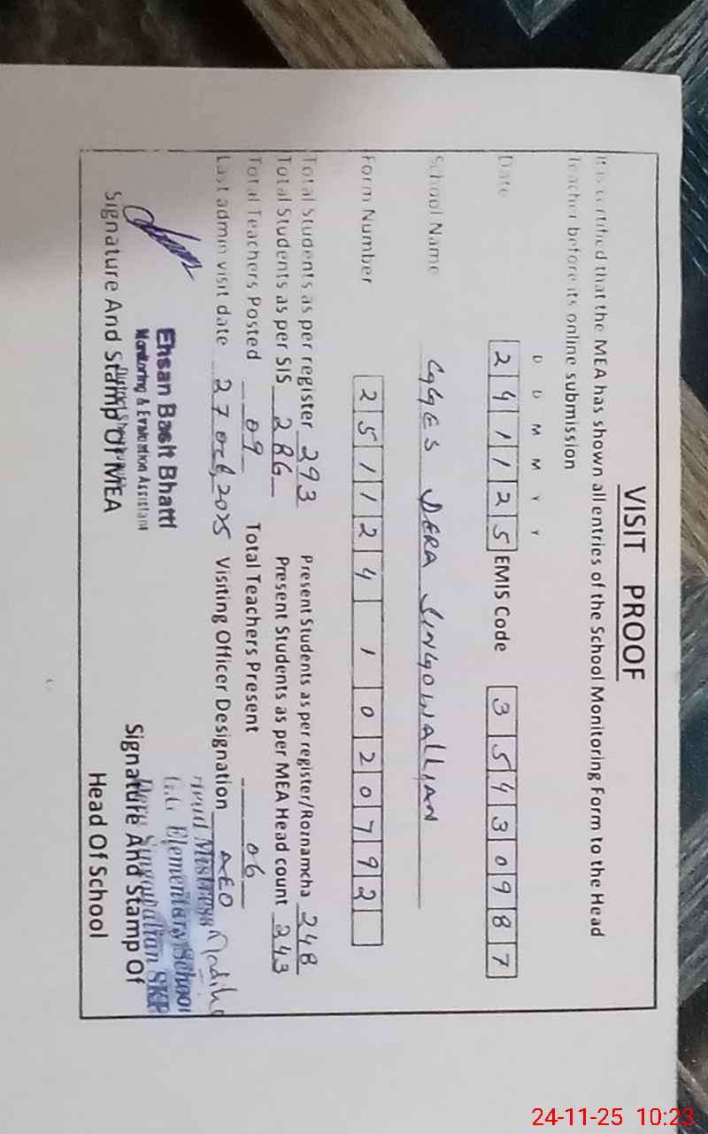 | EMIS Code: 35430987 | Name of School: GGES DERA SINGOWALLIAN | |||