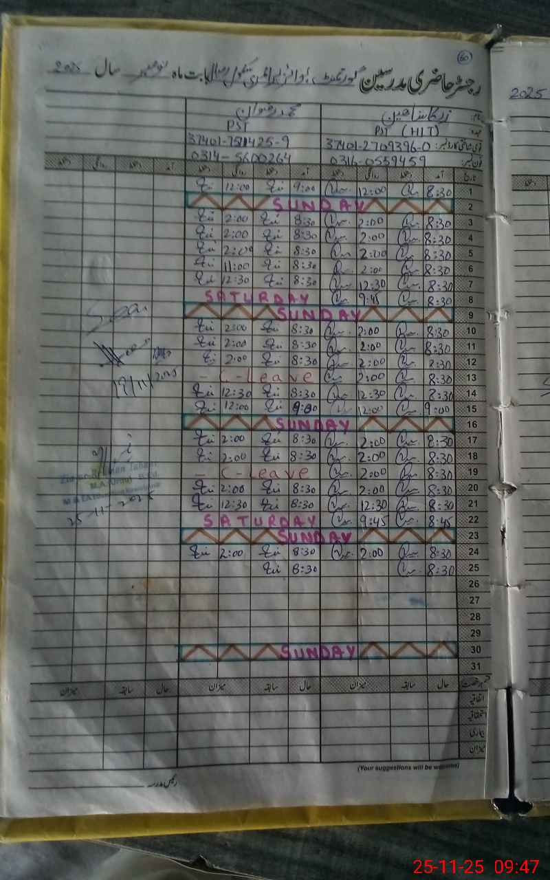 | Name: Za**** Sh**** Designation: (School Headmaster's/Headmistress's) PST Phone/Cell Number: 03**** |
