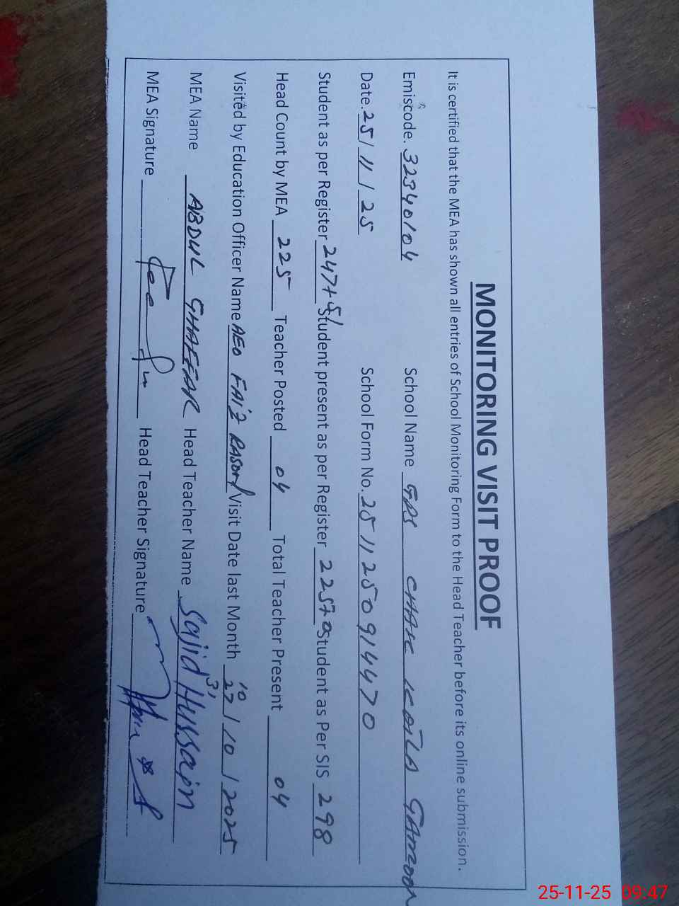 | EMIS Code: 32340104 | Name of School: GPS CHAK KOTLA GAMOON | |||