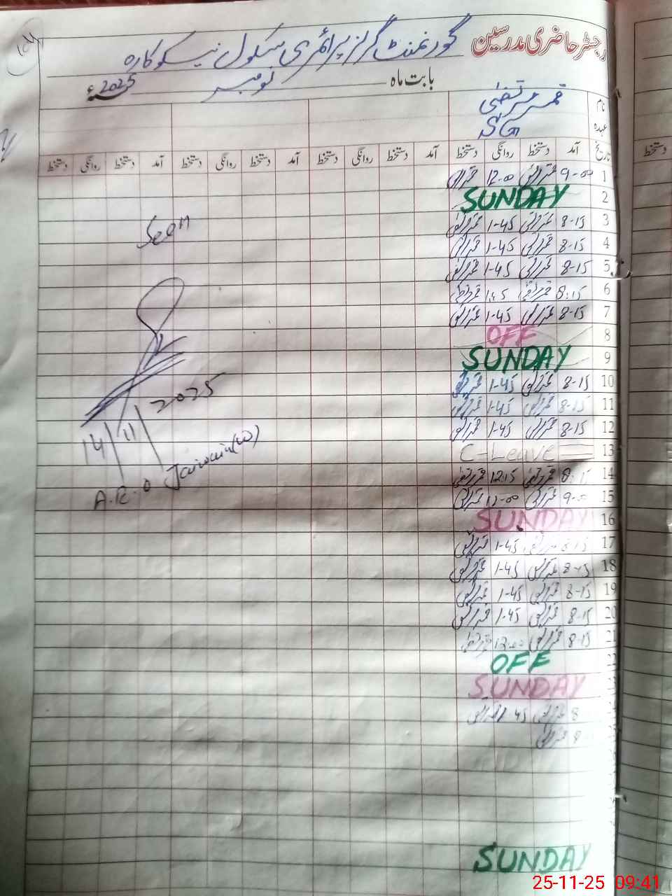 | Remarks (Use Separate Page if Required): Afternoon shift attendance was not marked the previous day i.e 24 th November | |||||
