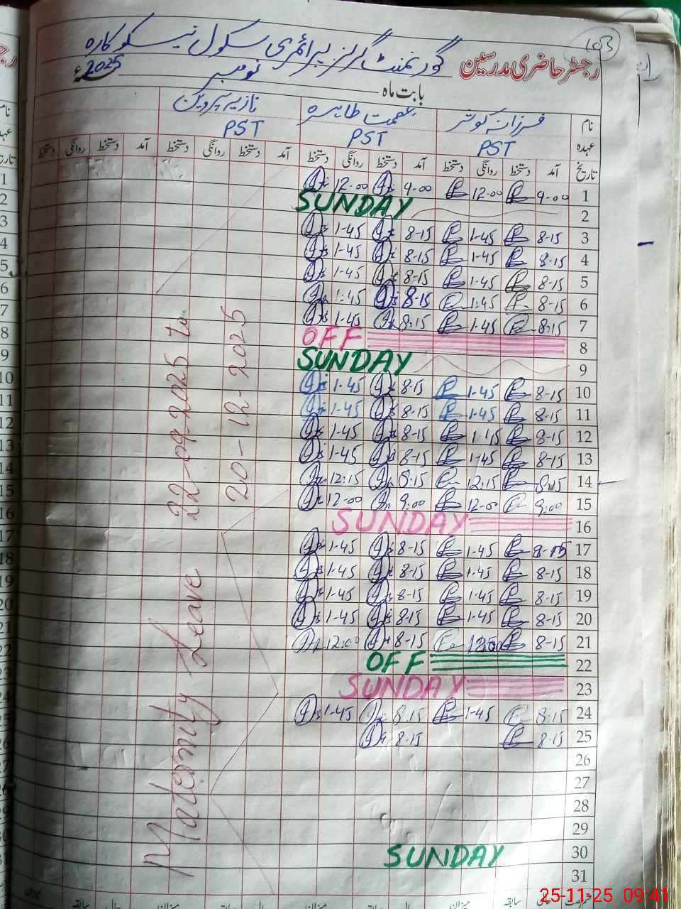 | 36**** | Na**** Pa**** | Regular | 31 | 0 | 0 | 31 | 0 | 0 | 0 | 0 | 0 | Maternity | |