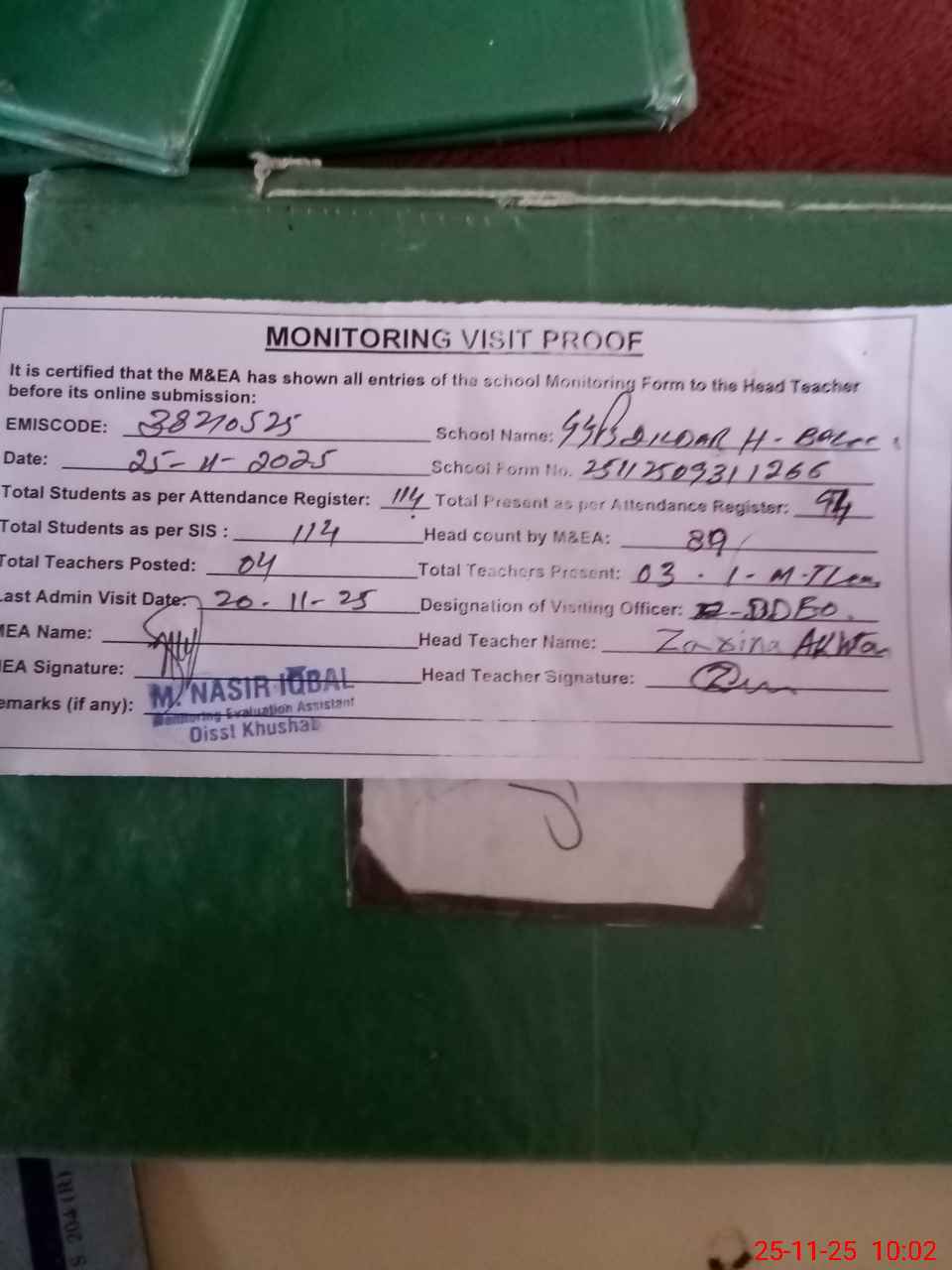 | EMIS Code: 38210525 | Name of School: GGPS DILDAR HUSSAIN BALOUCH | |||