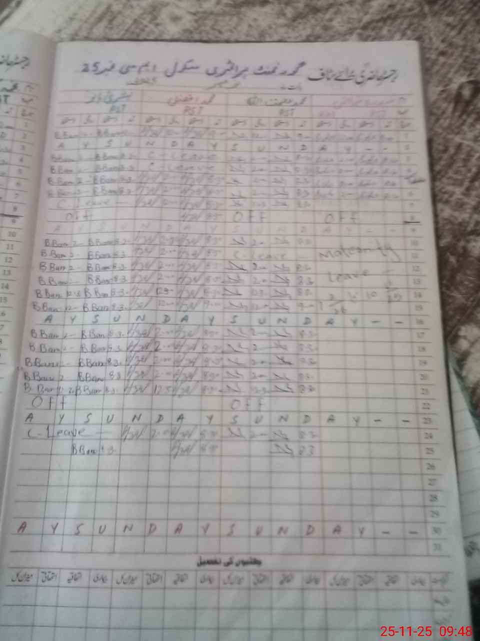 | CNIC | Full Name | Designation | R/C | Absence During Last Calender Month |