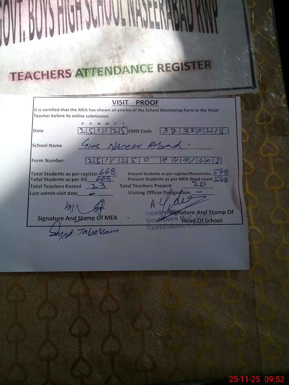 | EMIS Code: 37330215 | Name of School: GHS NASEER ABAD | |||
