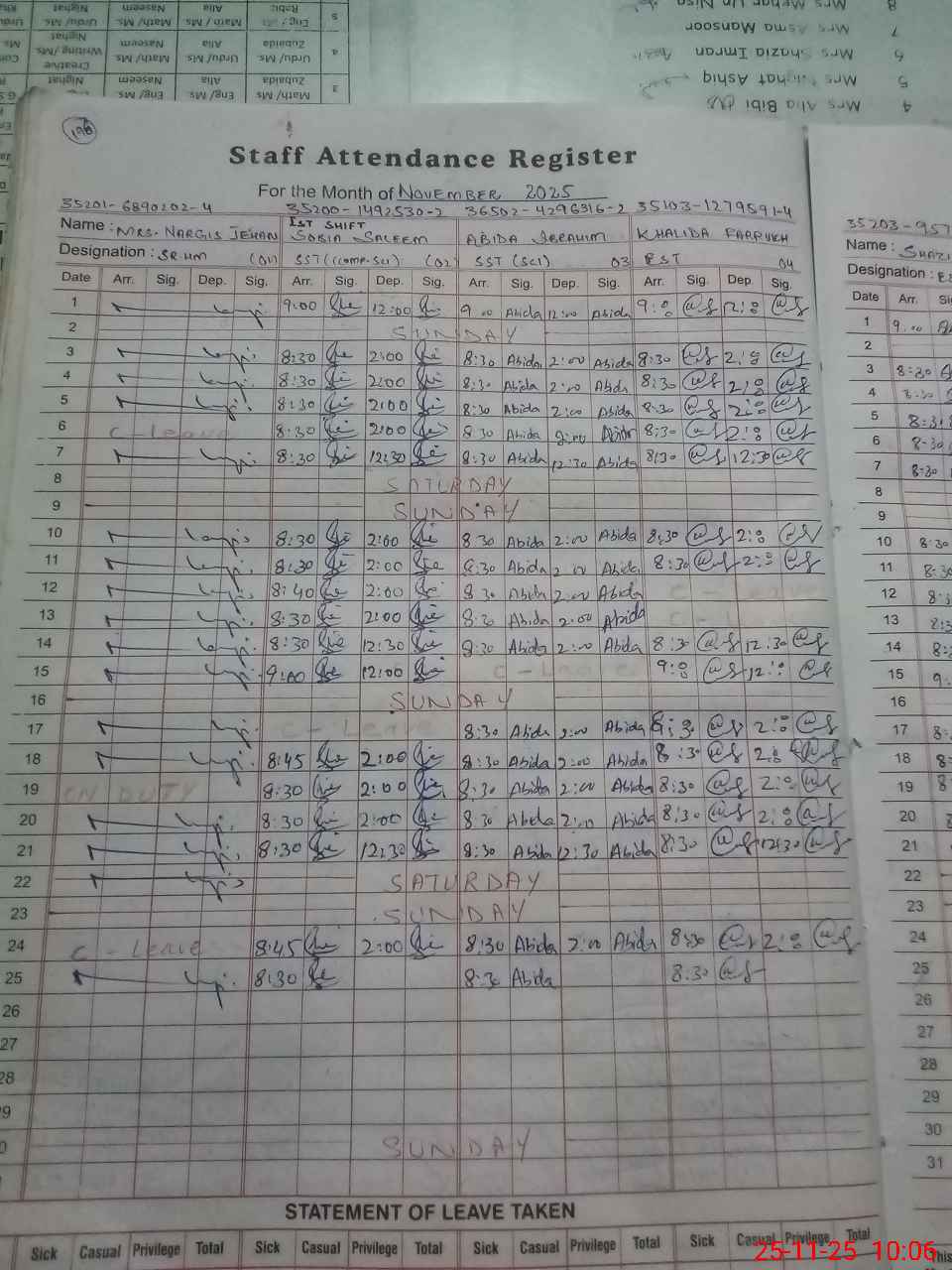 | 36**** | Sy**** Ni**** Fa**** Ja**** | Regular | 0 | 0 | 31 | 0 | 0 | 0 | 0 | 0 | 0 | Absent (Un-Authorized) | |
