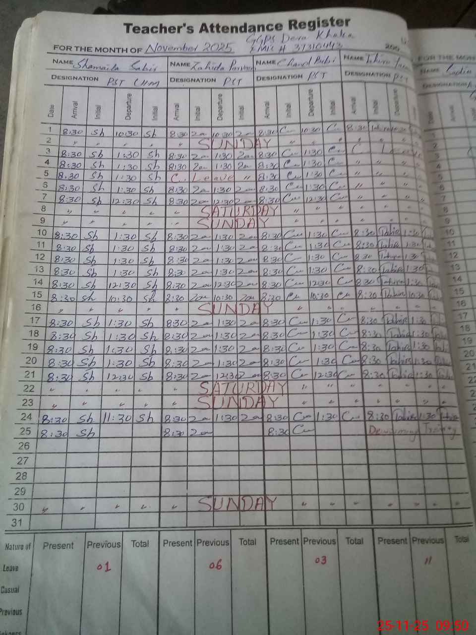 | CNIC | Full Name | Designation | R/C | Absence During Last Calender Month |