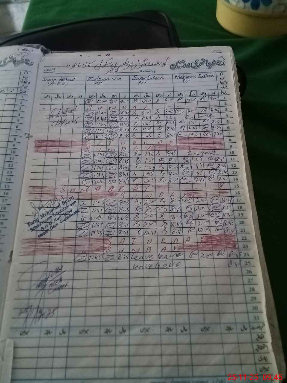 | Remarks (Use Separate Page if Required): HEAD TEACHER REFUSED TO SING THE VISIT PROOF DUE TO SHE HAS FORCE TO PRESENT THE ZAIB UN NISA PST CAME AT 0945 | |||||