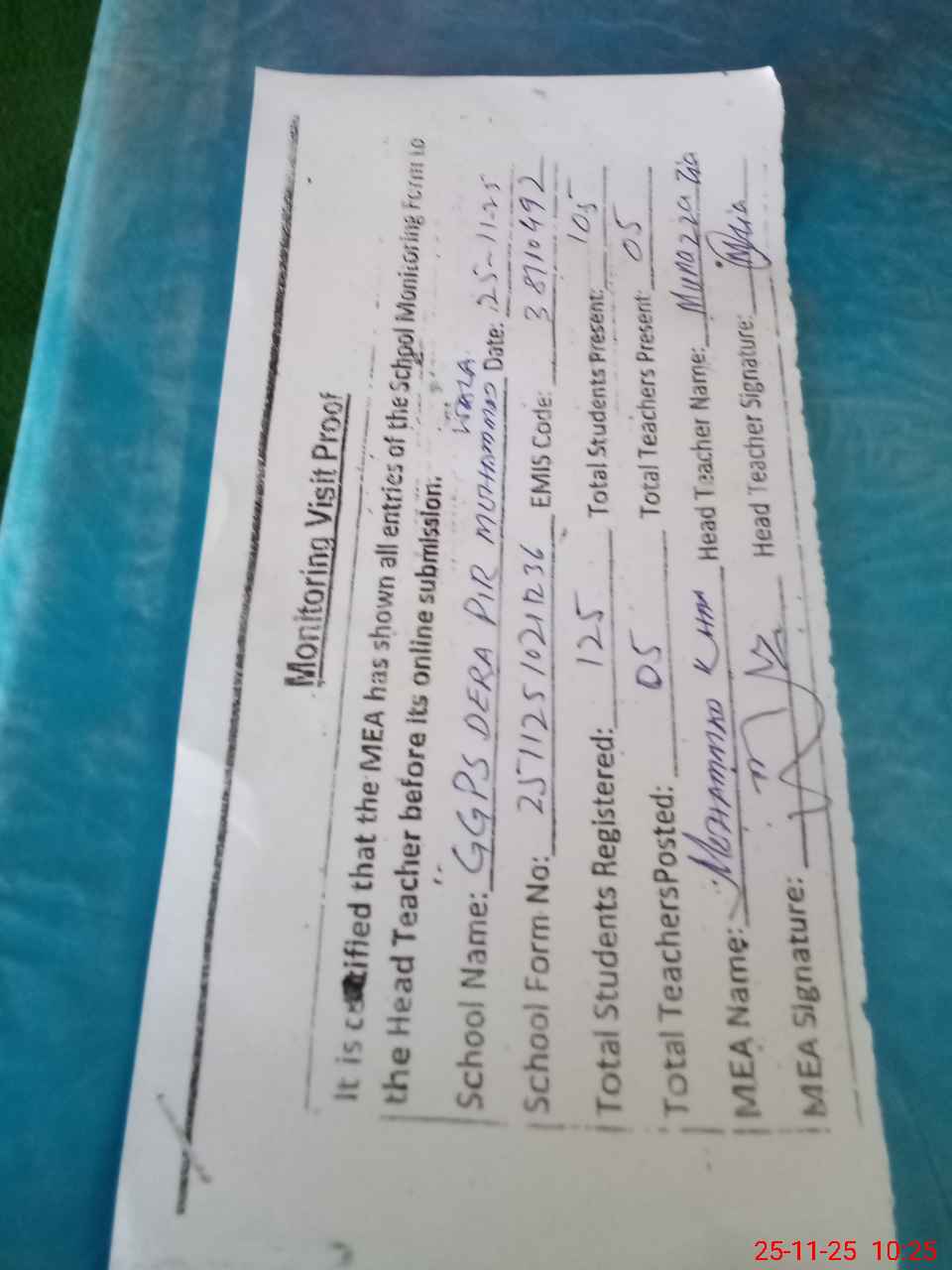 | EMIS Code: 38110492 | Name of School: GGPS DERA PIR MUHAMMAD WALA | |||