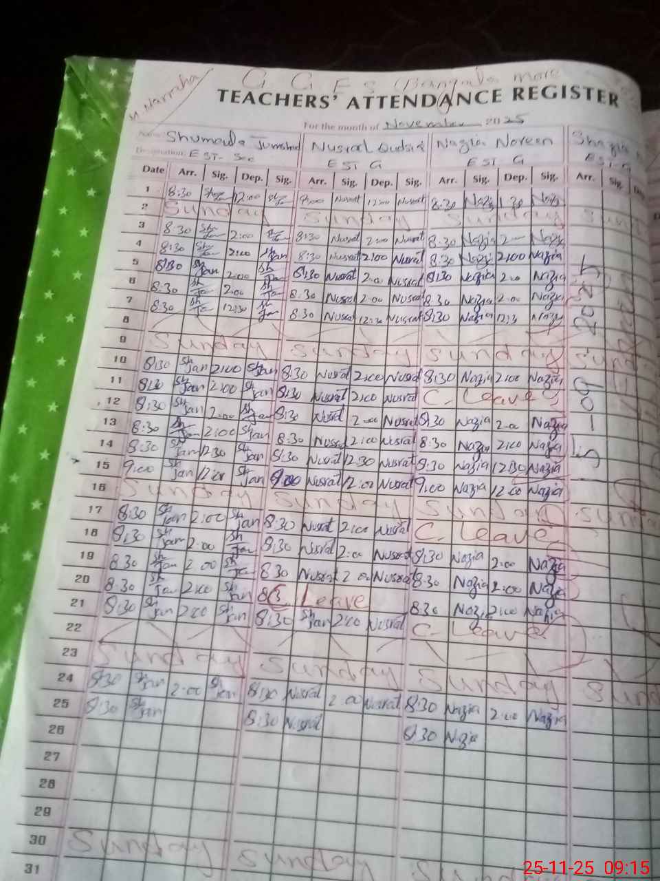 | 36**** | Ha**** UrRe**** | CHOWKIDAR | Regular | 0 | 0 | 0 | 0 | 0 | 0 | 0 | 0 | 0 | Absent (Un-Authorized) |