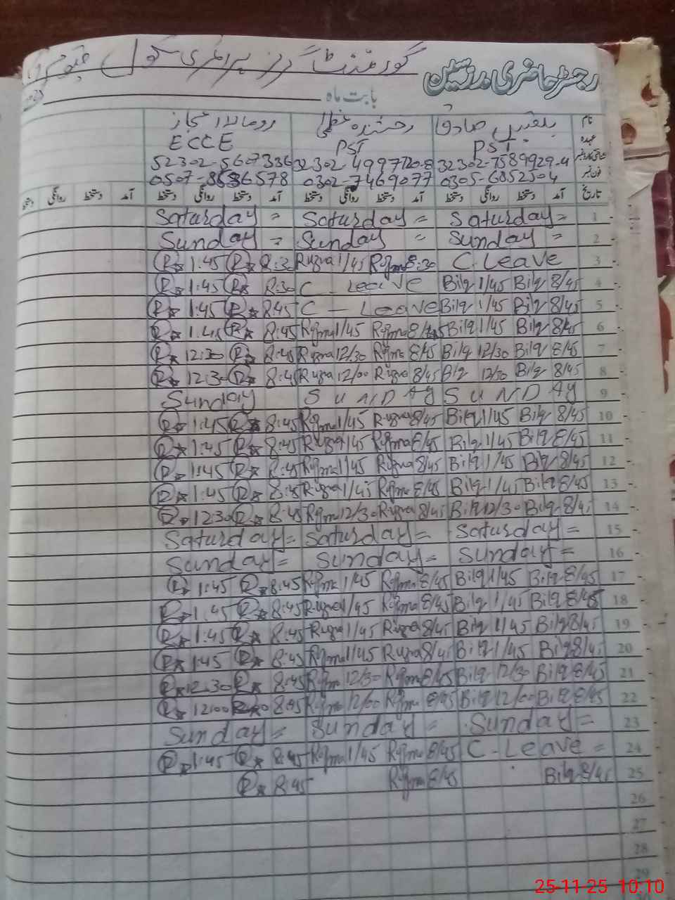 | Name: Bi**** Sa**** Designation: (School Headmaster's/Headmistress's) pst Phone/Cell Number: 03**** |
