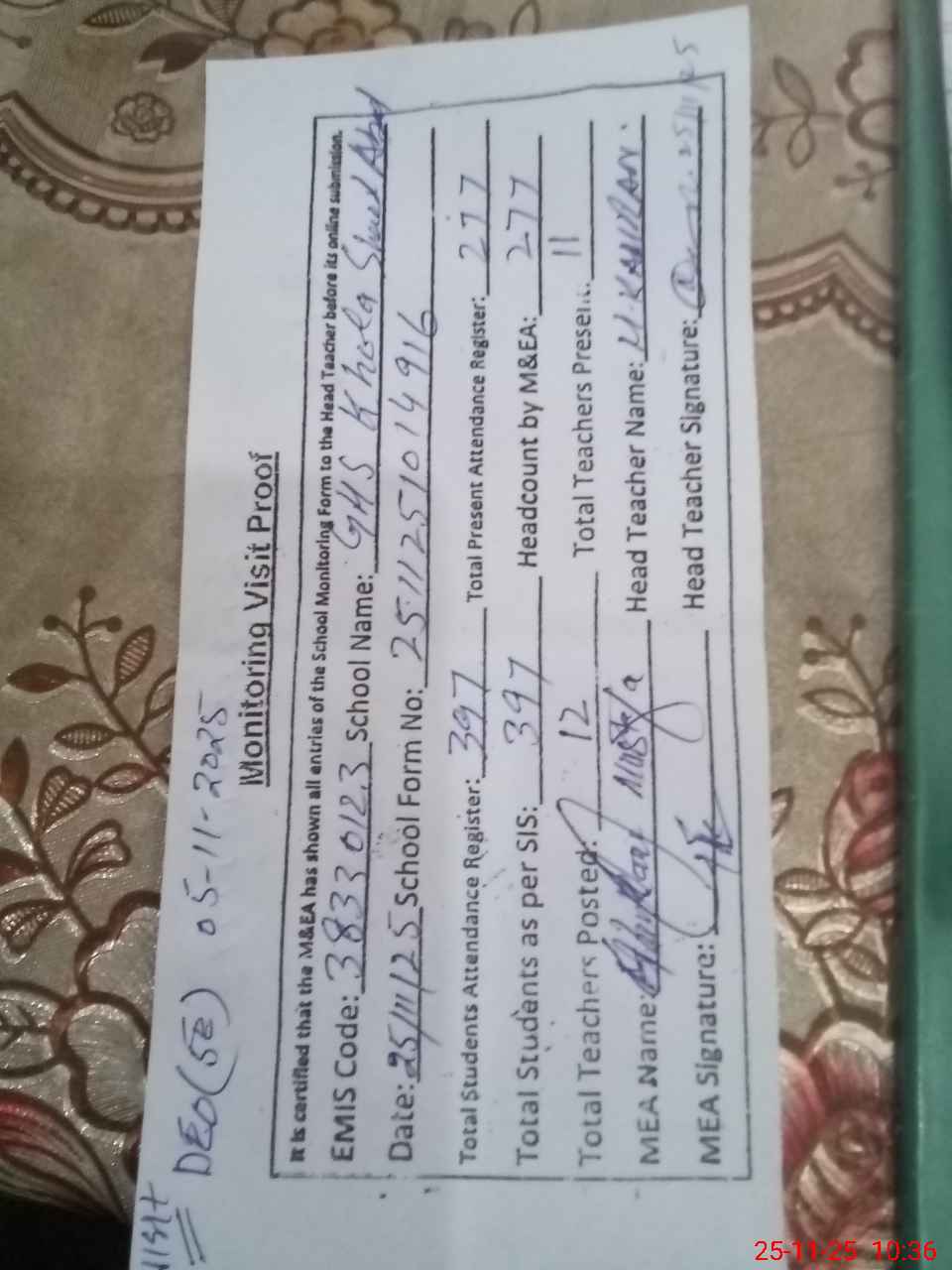 | EMIS Code: 38330123 | Name of School: GHS KHOLA SAEED ABAD PO DING VIA CHASHMA BAR | |||