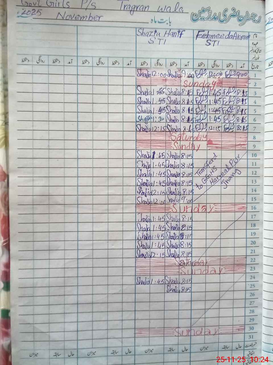 | Remarks (Use Separate Page if Required): STI Fehmeeda Akram NIC: 33203-4013537-8 appointed against vacant seat at Tragran Wala EMIS 33240443 Markaz Jaiven Ahmed Pur Sial but teacher is performing her duty at GGHS Harmal Pur Jhang since 10 November 2025.Posting of said teacher is required at urgent basis due to acute lack of staff at Tragran Wala. | |||||