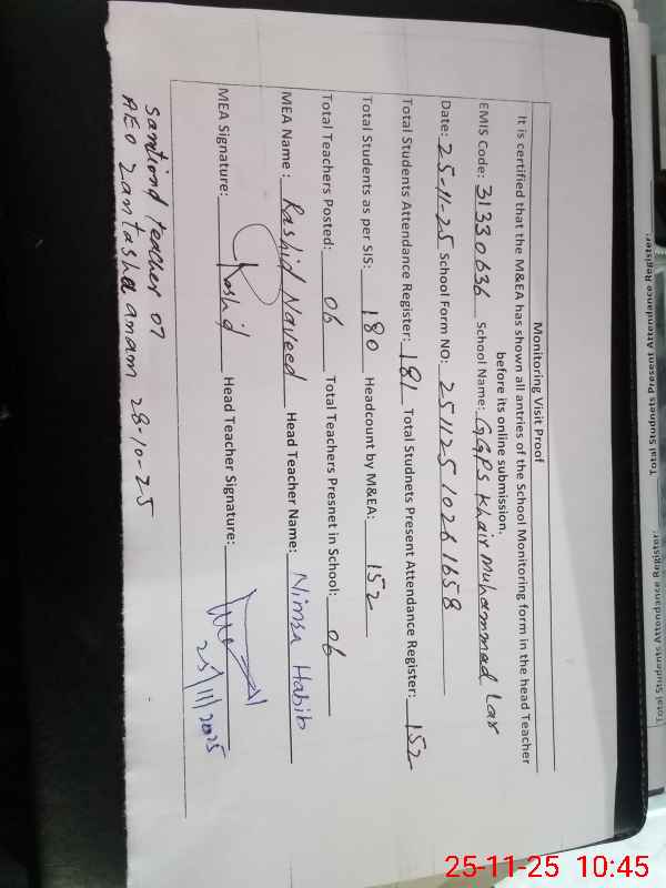 | EMIS Code: 31330636 | Name of School: GGPS KHAIR MUHAMMAD LAR | |||