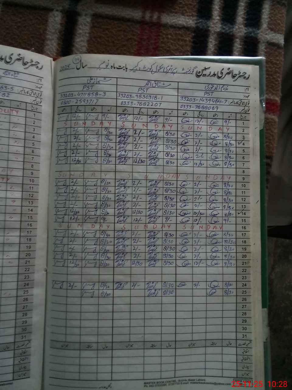 | Name: NA**** AH**** Designation: (School Headmaster's/Headmistress's) PST Phone/Cell Number: 03**** |