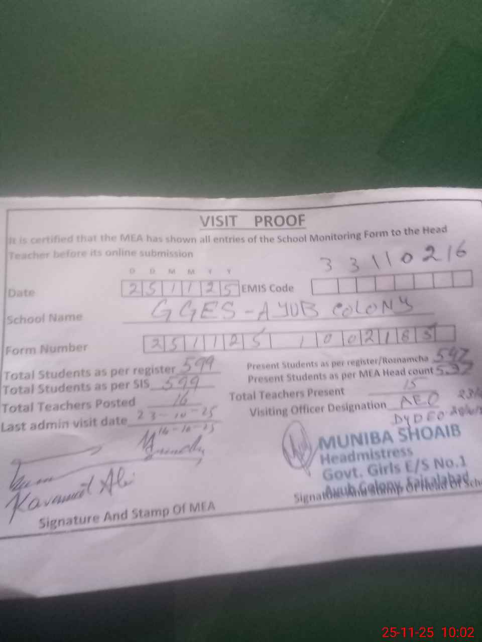 | EMIS Code: 33110216 | Name of School: GGES NO.1 AYUB COLONY | |||