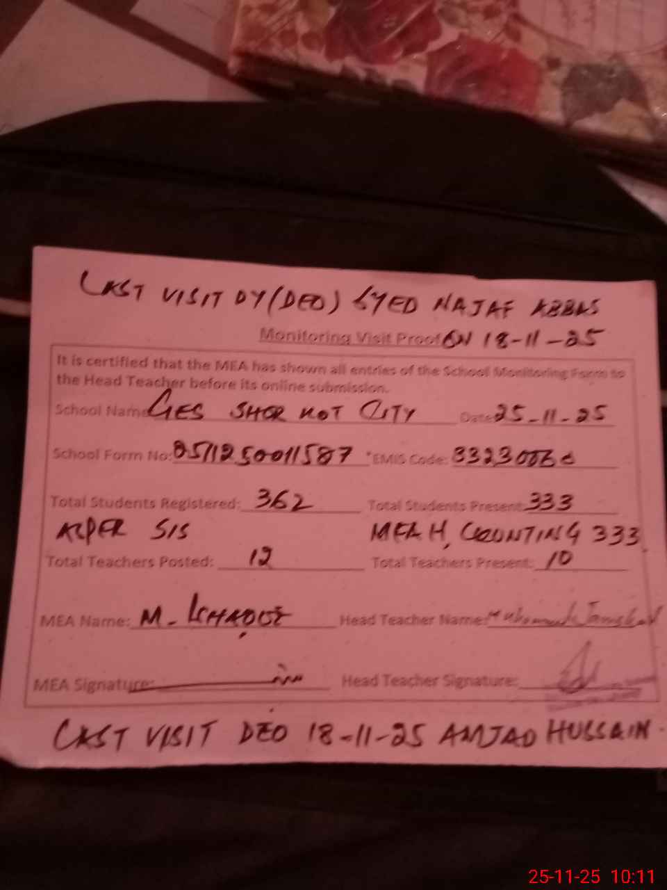 | Certified that this School was Inspected by the Undersigned MEA/DMO Today and the Information Stated Above is as Per Record. | |||||