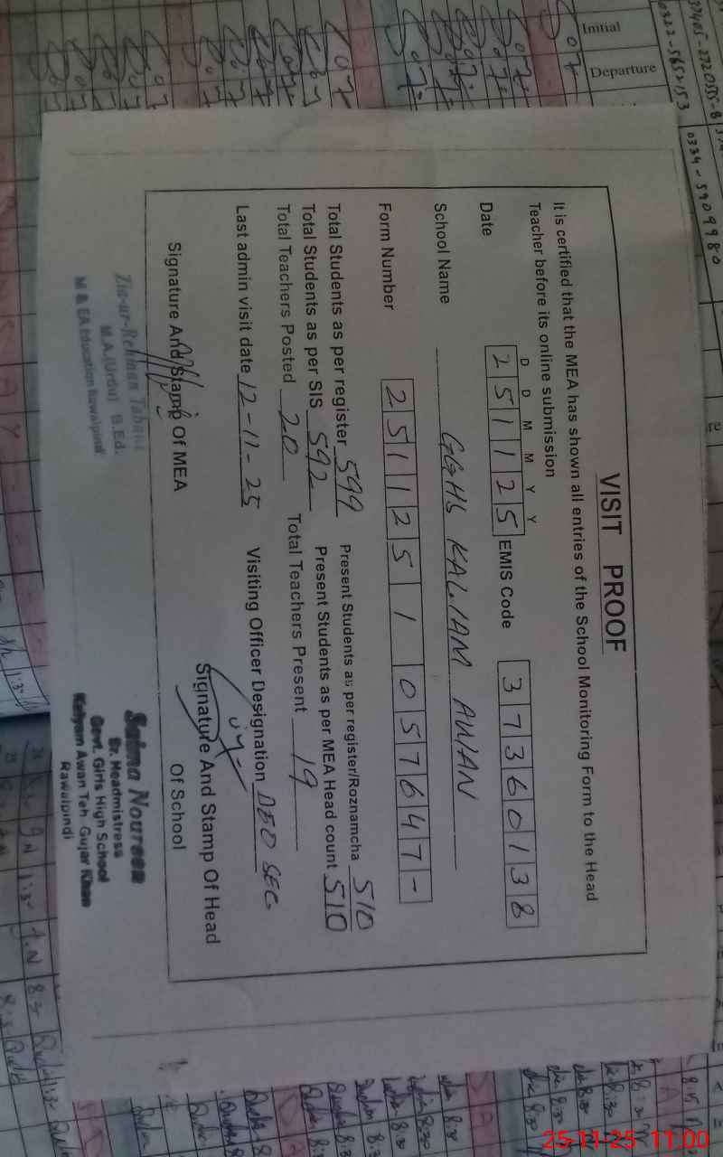| EMIS Code: 37360138 | Name of School: GGHS KALIAM AWAN | |||