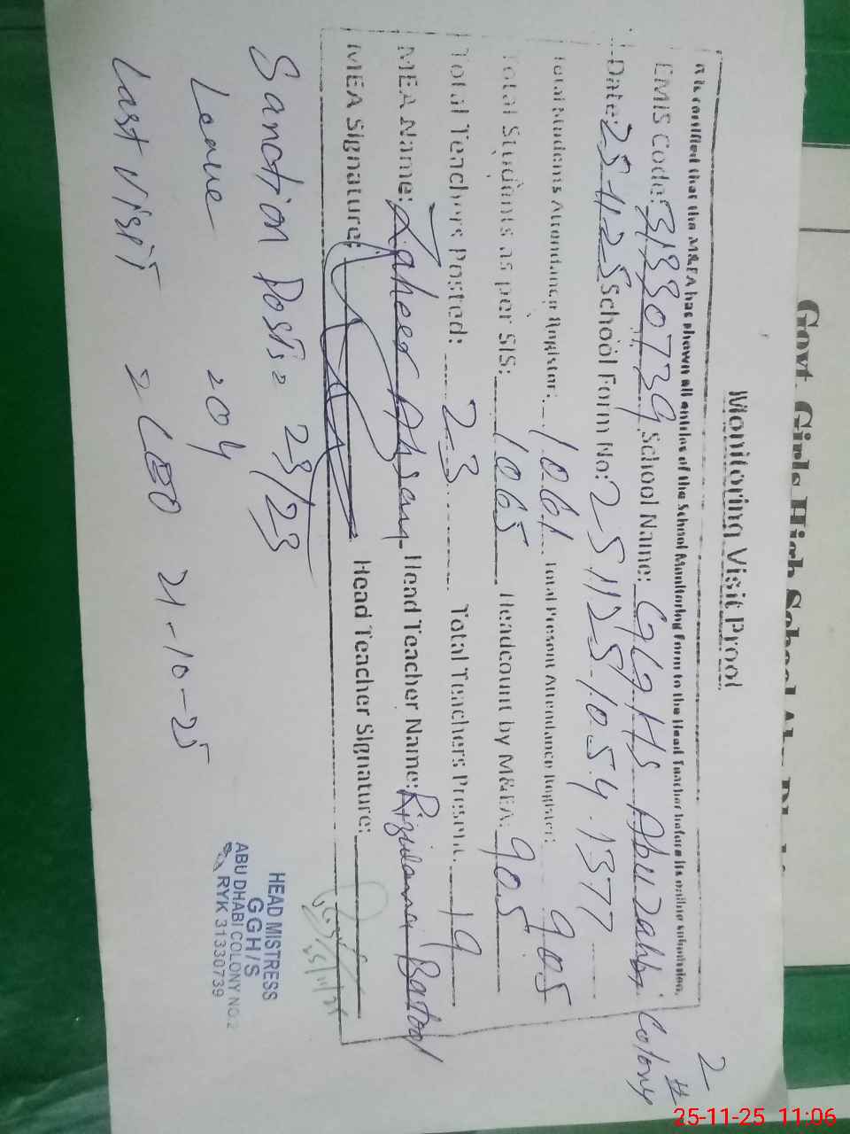 | EMIS Code: 31330739 | Name of School: GGHS ABU ZAHBI COLONY NO.2 | |||