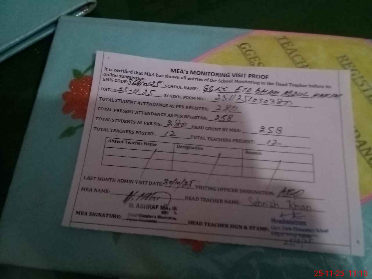 | EMIS Code: 36410125 | Name of School: GGES EID GHAH ABDUL HAKIM | |||