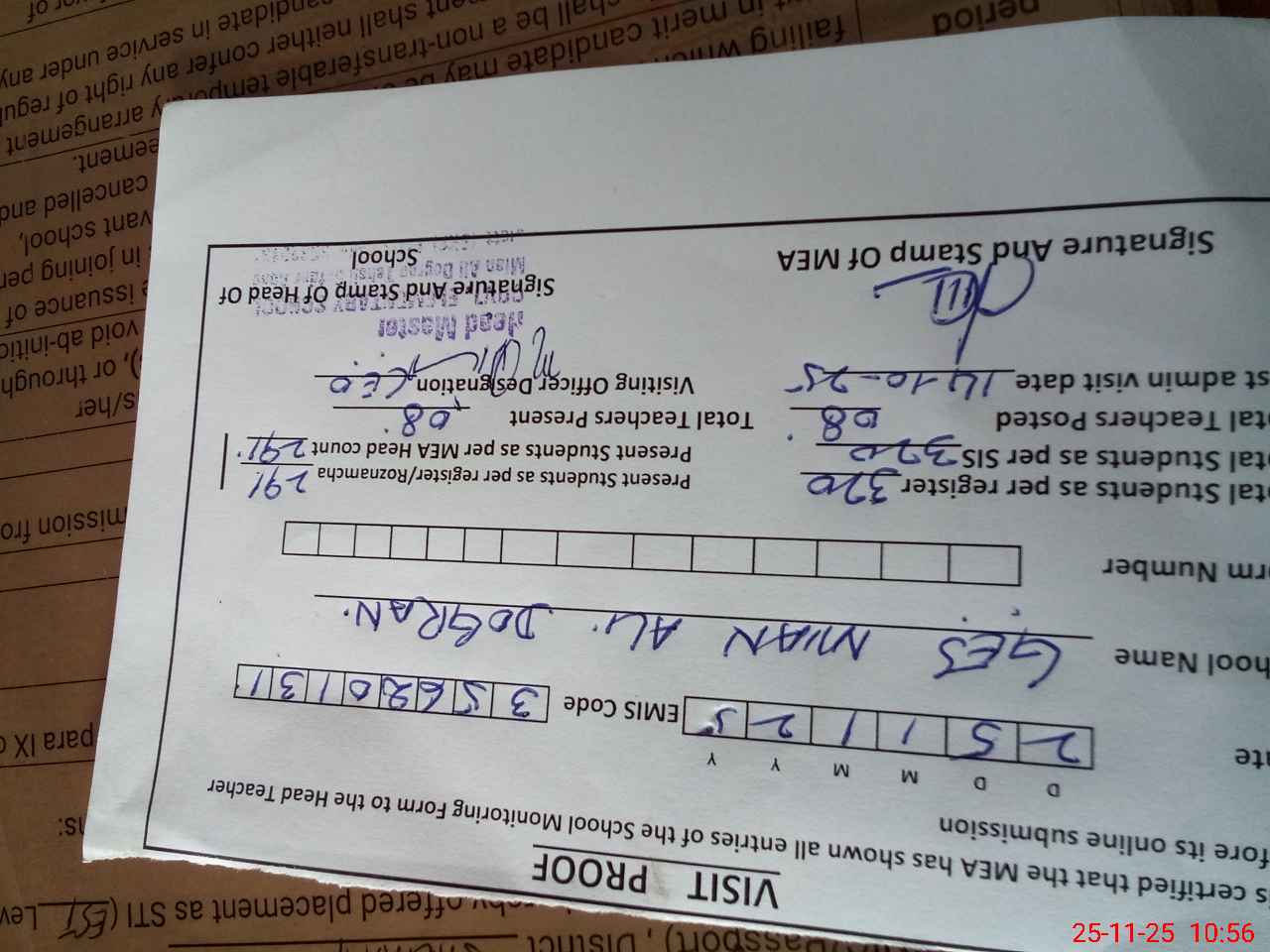 | Certified that this School was Inspected by the Undersigned MEA/DMO Today and the Information Stated Above is as Per Record. | |||||