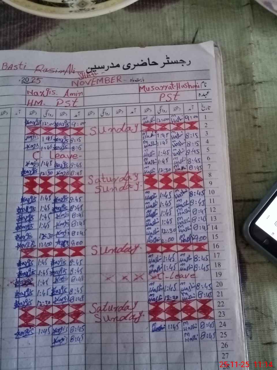 | CNIC | Full Name | Designation | R/C | Absence During Last Calender Month |