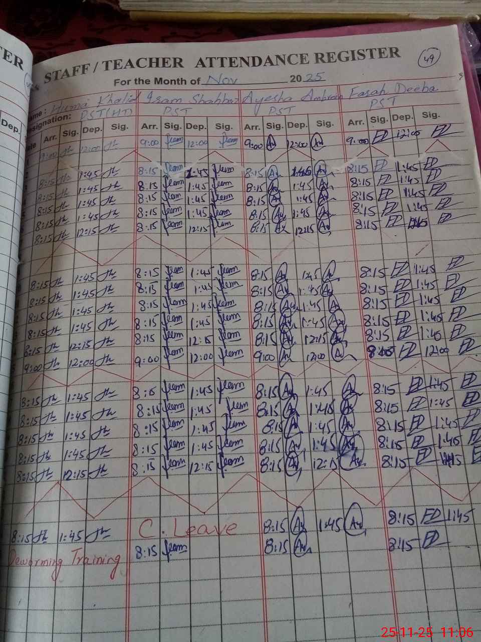 | CNIC | Full Name | Designation | R/C | Absence During Last Calender Month |