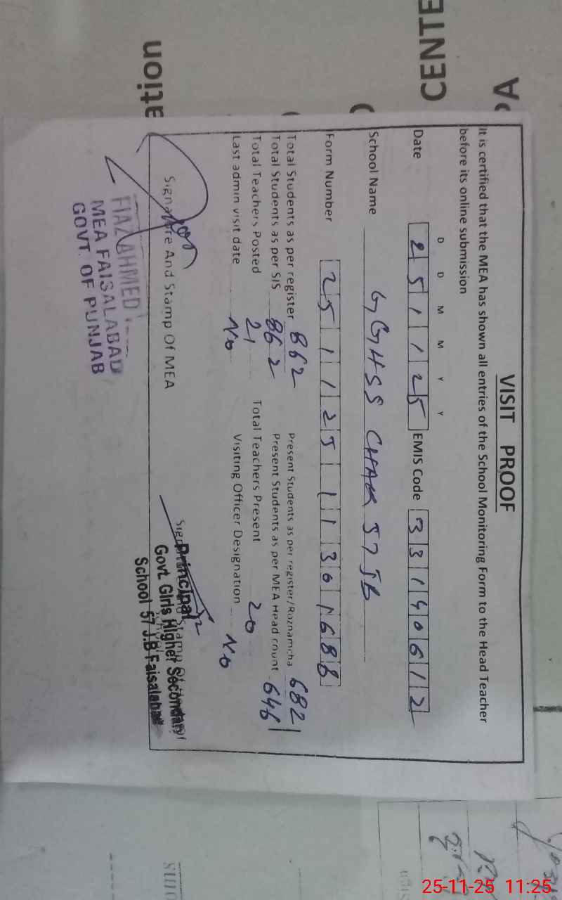 | EMIS Code: 33140612 | Name of School: GGHSS CHAK 57 JB FSD | |||