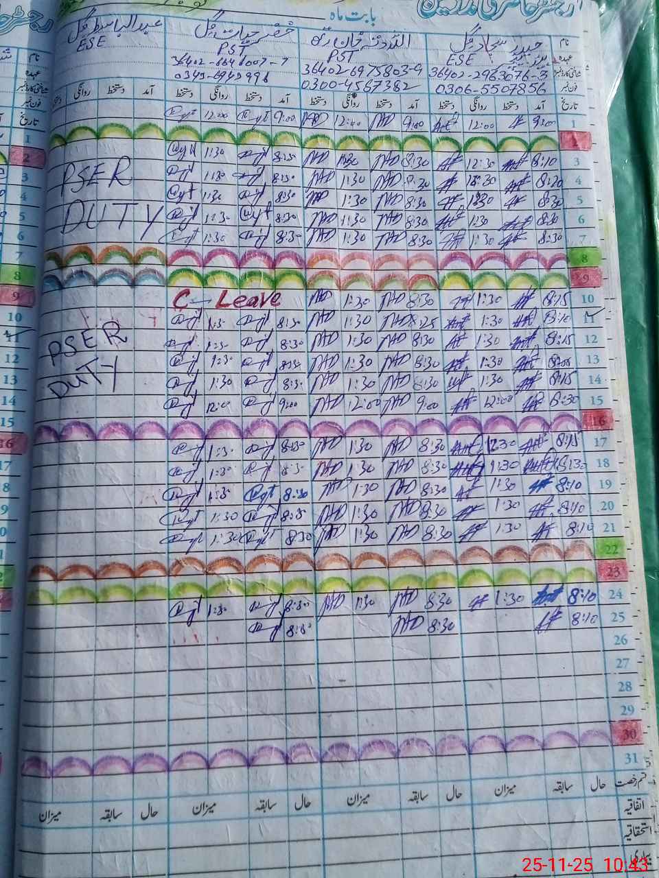 | CNIC | Full Name | Designation | R/C | Absence During Last Calender Month |