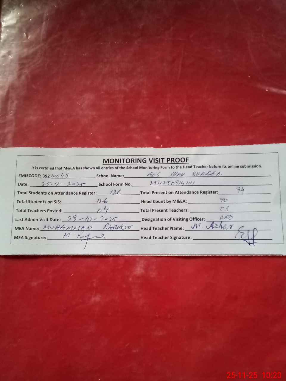 | EMIS Code: 39210048 | Name of School: GES SHAH KHAGGA PAKPATTAN | |||
