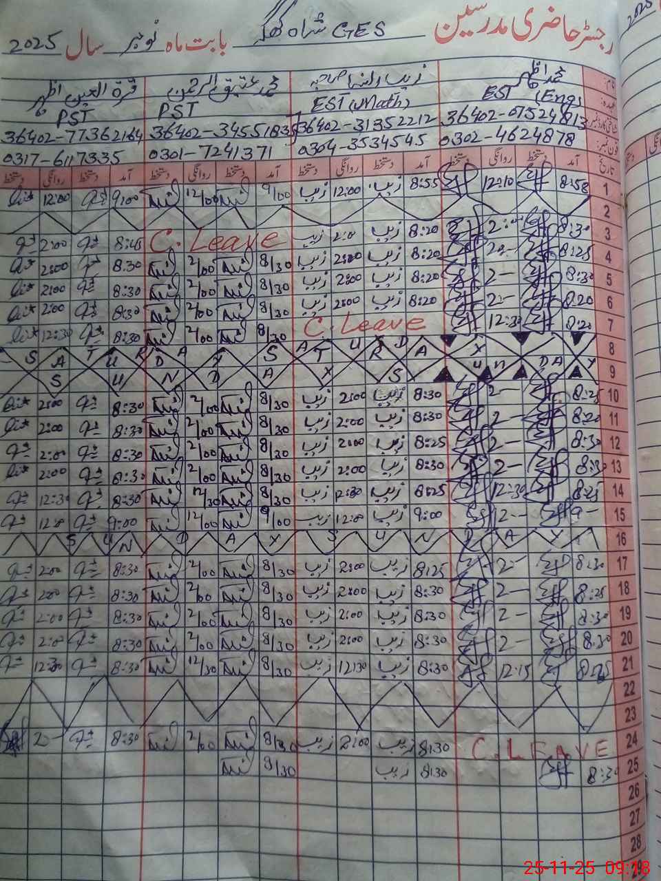| Name: Mu**** Az**** Designation: (School Headmaster's/Headmistress's) EST Phone/Cell Number: 03**** |