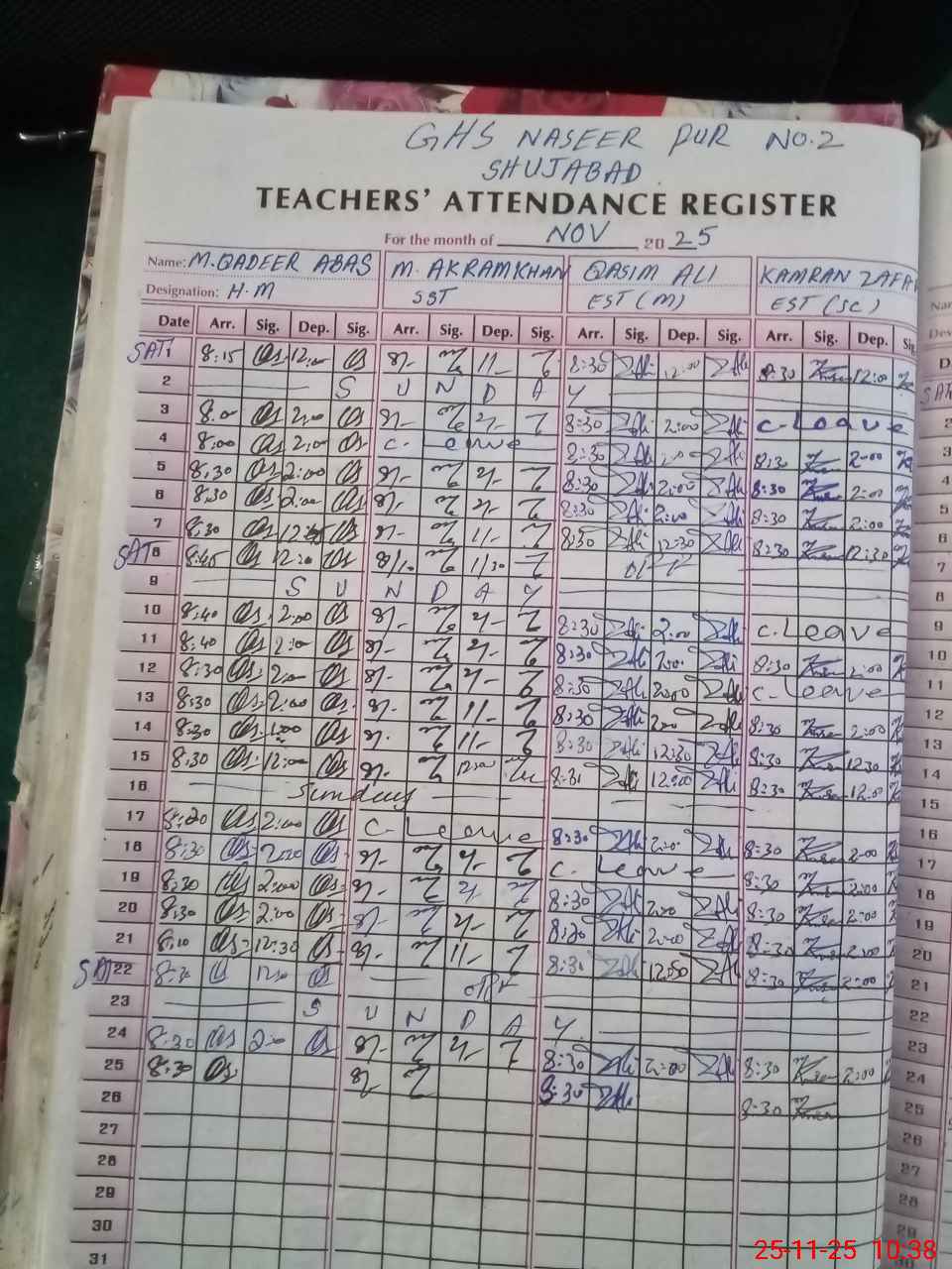 | CNIC | Full Name | Designation | R/C | Absence During Last Calender Month |