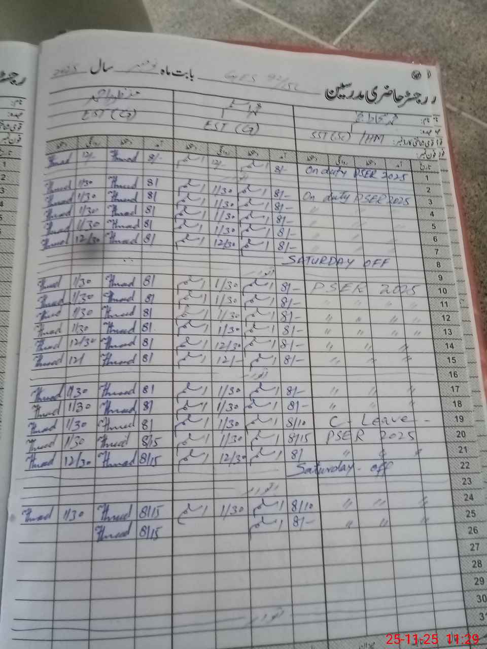 | CNIC | Full Name | Designation | R/C | Absence During Last Calender Month |