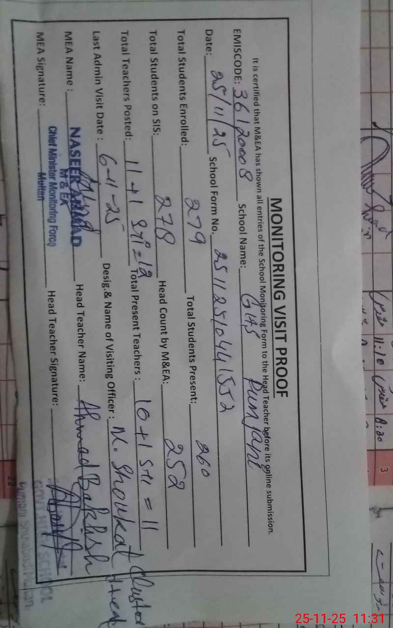 | Monitoring Date: 25-11-2025 | Start Time: 25-11-2025 10:44 AM | End Time: 25-11-2025 11:33 AM | Name of MEA: Na**** Ah**** | |