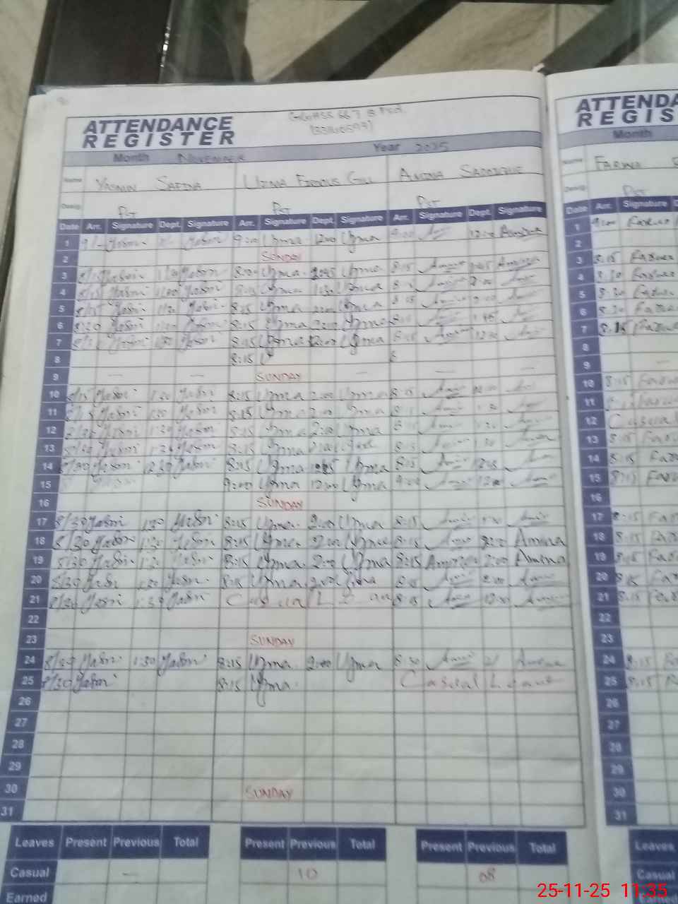 | 33**** | Aa**** Si**** | PST | Regular | 2 | 0 | 0 | 0 | 0 | 0 | 0 | 0 | 2 | Casual |