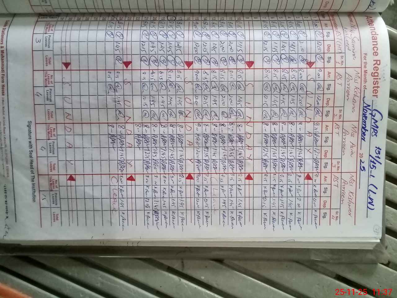 | CNIC | Full Name | Designation | R/C | Absence During Last Calender Month |