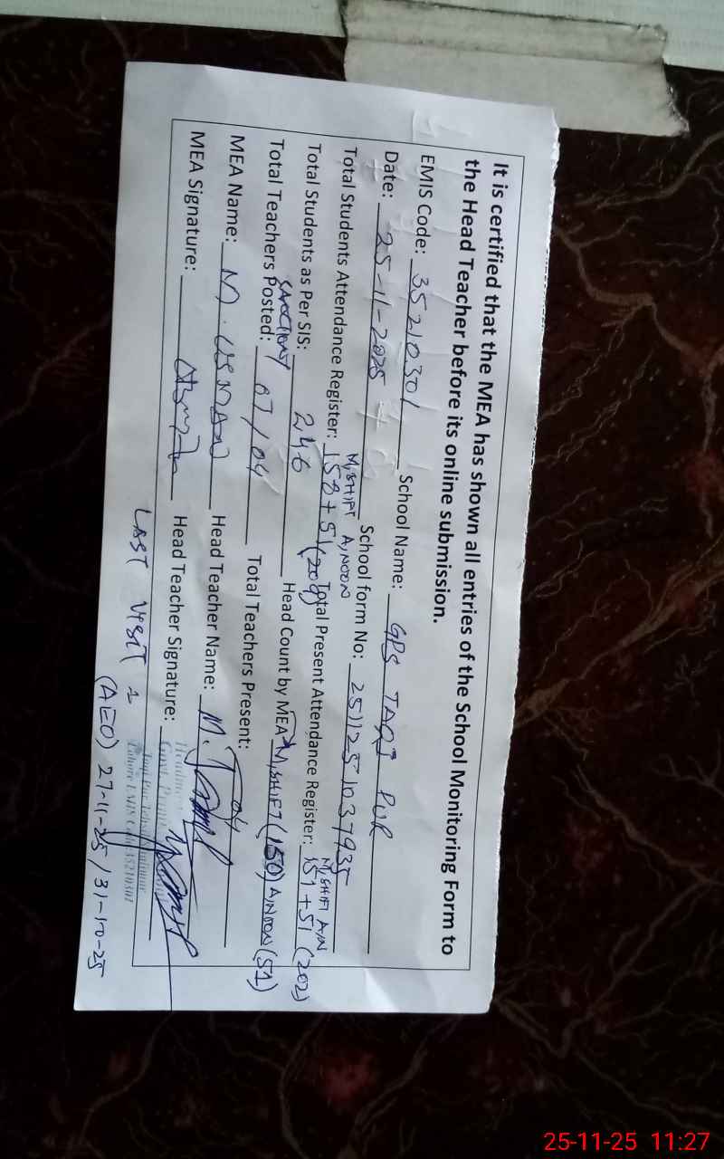 | EMIS Code: 35210301 | Name of School: GPS TAQI PUR | |||
