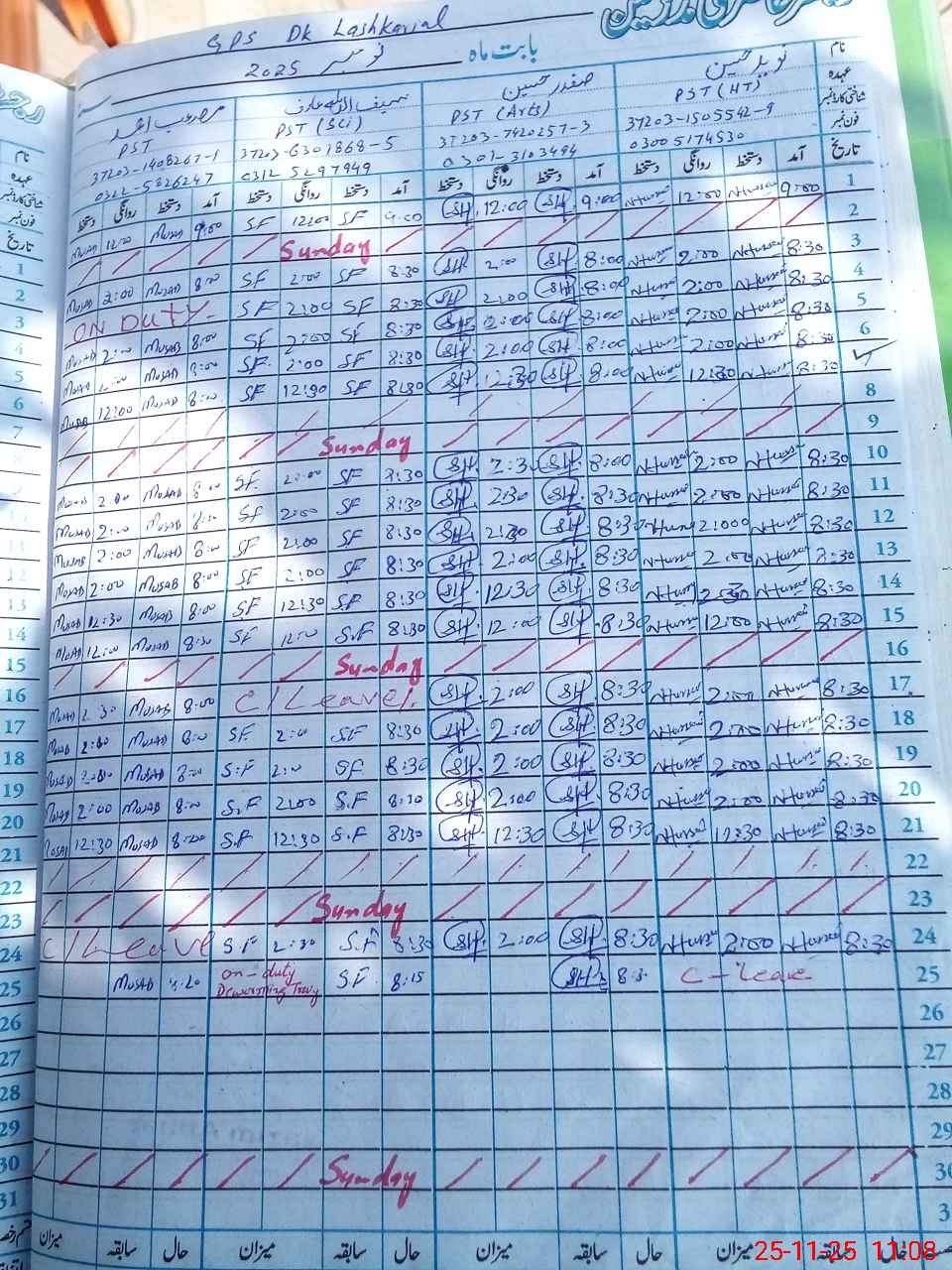 | CNIC | Full Name | Designation | R/C | Absence During Last Calender Month |