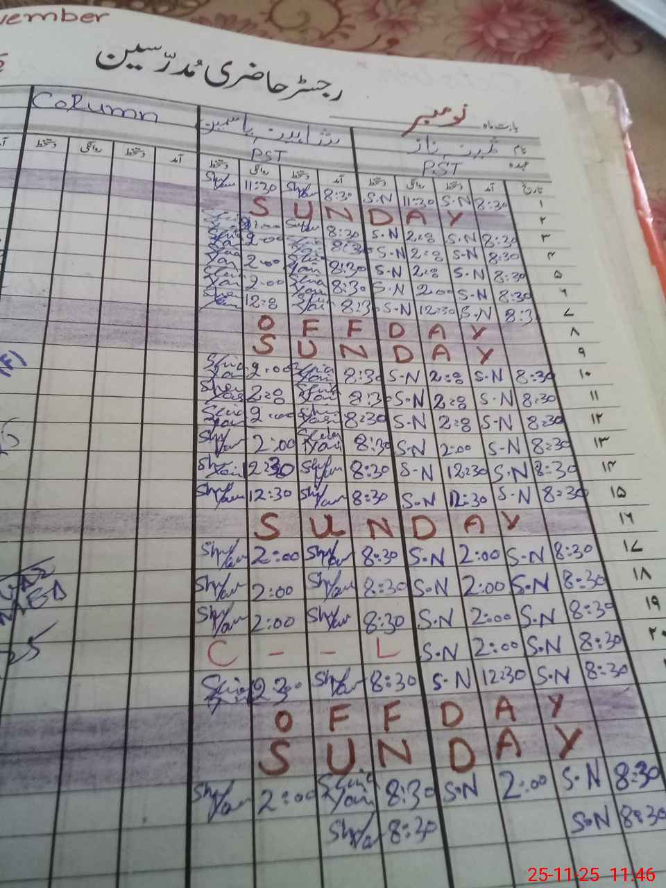 | CNIC | Full Name | Designation | R/C | Absence During Last Calender Month |