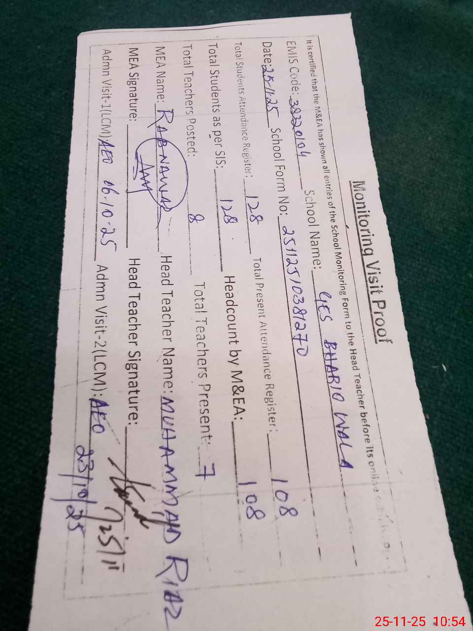 | EMIS Code: 38320104 | Name of School: GES BHARYON WALA | |||