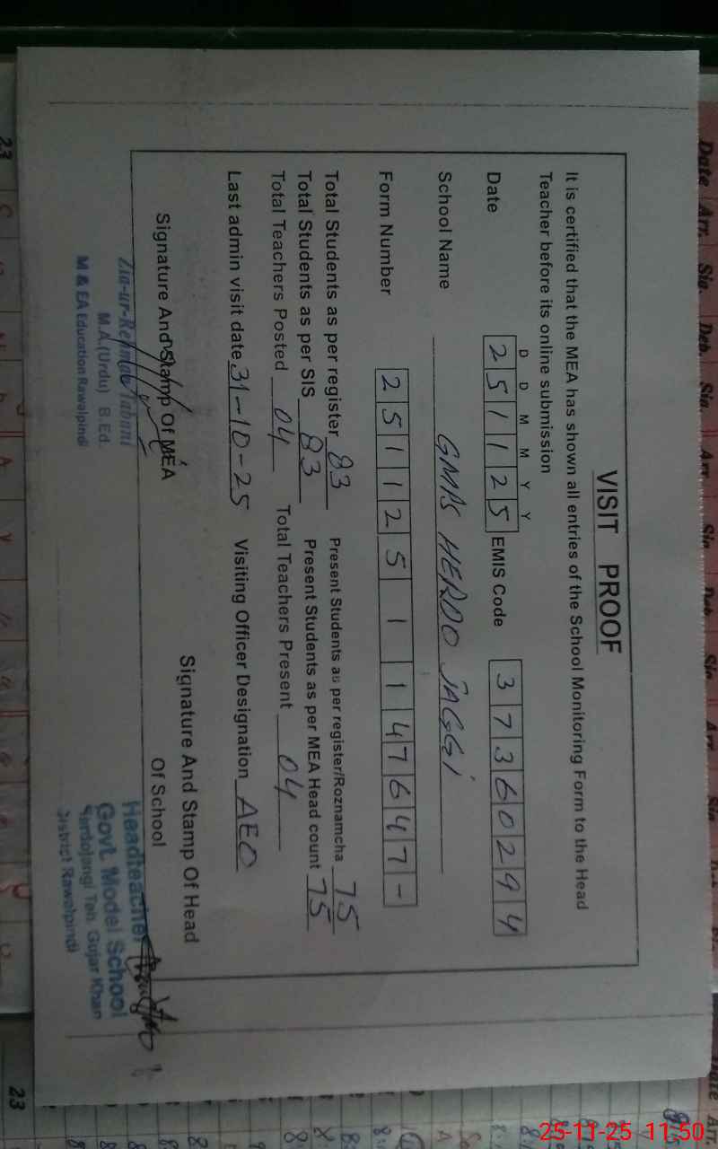 | EMIS Code: 37360294 | Name of School: GPS MODEL HERDO JHAGI | |||