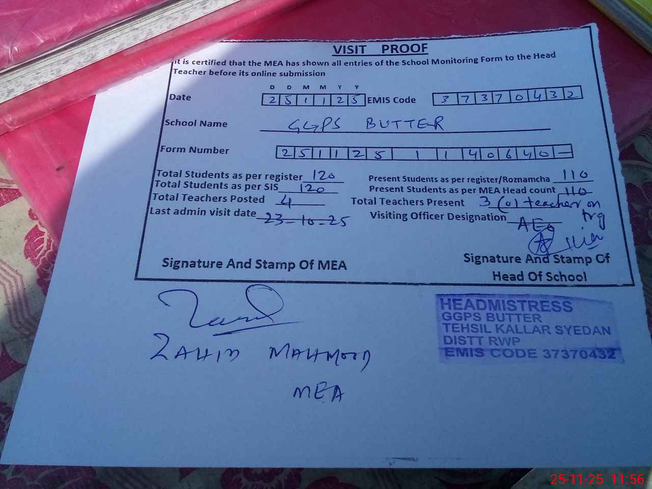 | Certified that this School was Inspected by the Undersigned MEA/DMO Today and the Information Stated Above is as Per Record. | |||||