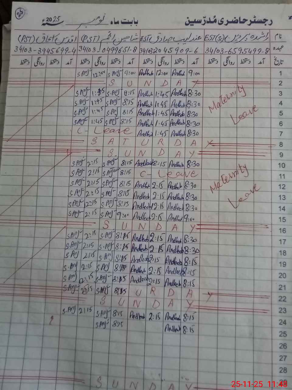 | 34**** | Ra**** Pa**** | Regular | 27 | 0 | 0 | 27 | 0 | 0 | 0 | 0 | 0 | Maternity | |