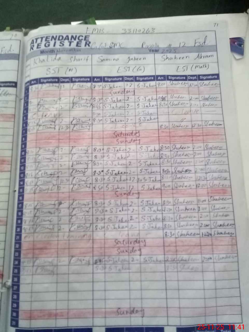 | Name: KH**** PA**** Designation: (School Headmaster's/Headmistress's) S.S.T.(ARTS) Phone/Cell Number: 03**** |