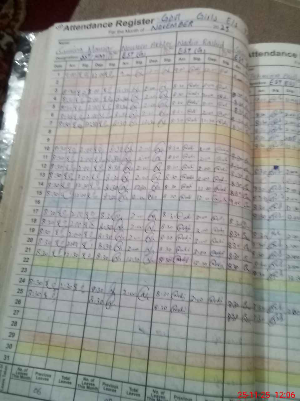 | CNIC | Full Name | Designation | R/C | Absence During Last Calender Month |
