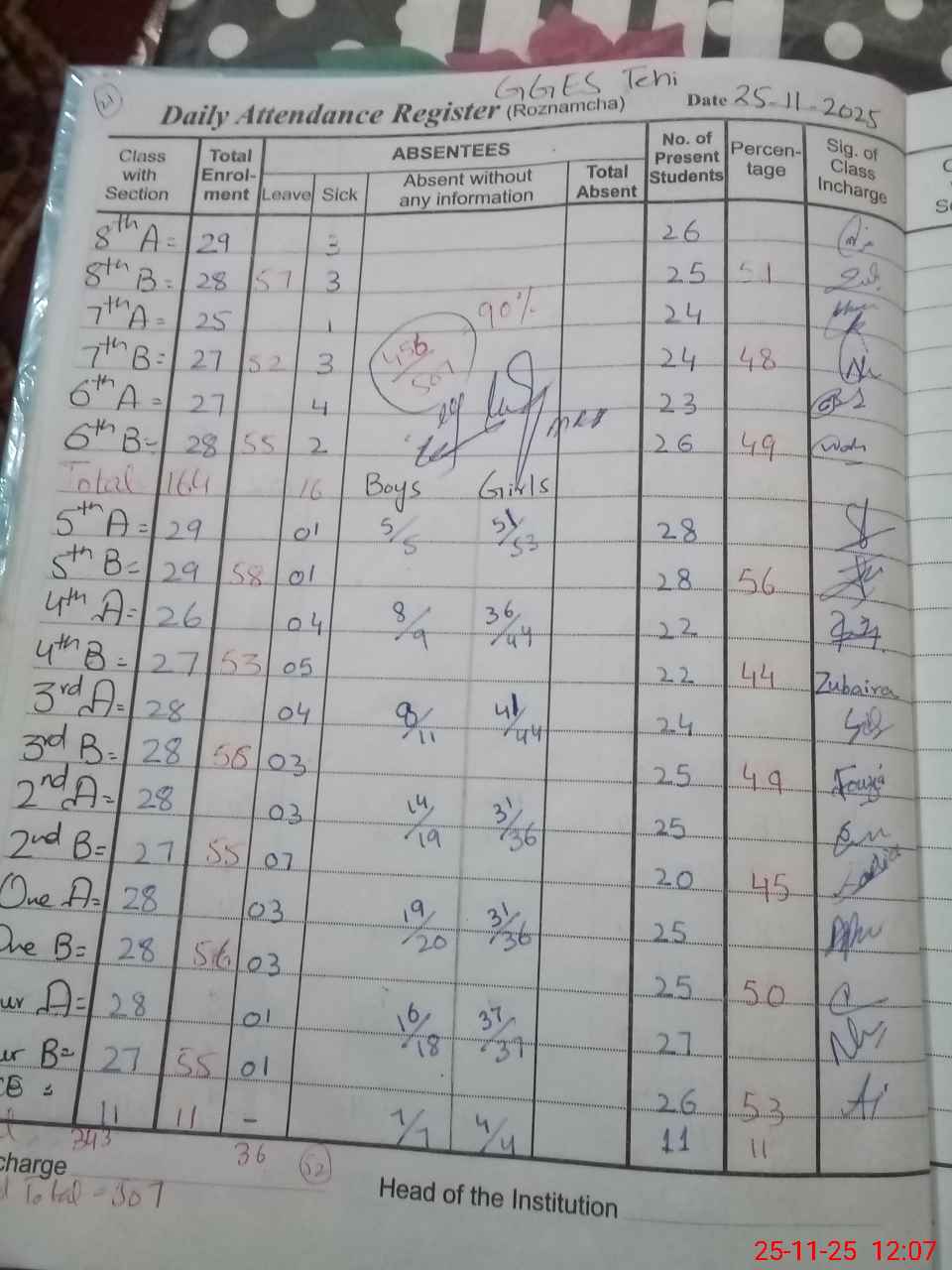 | Total no. of Classrooms: 12 No. of Classrooms Used for Teaching: 11 No. of Classrooms Storing Old Furniture, FTBs, etc: 0Comments if Any: 0 |