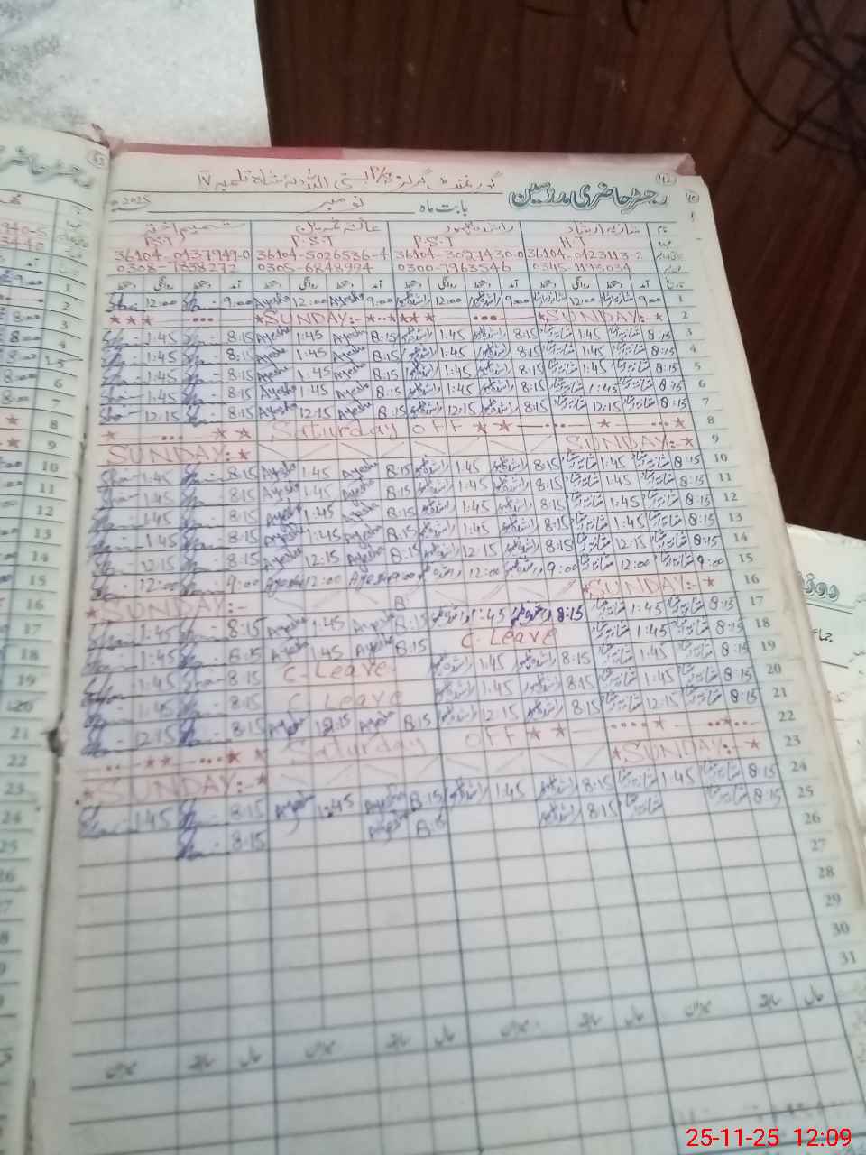 | CNIC | Full Name | Designation | R/C | Absence During Last Calender Month |