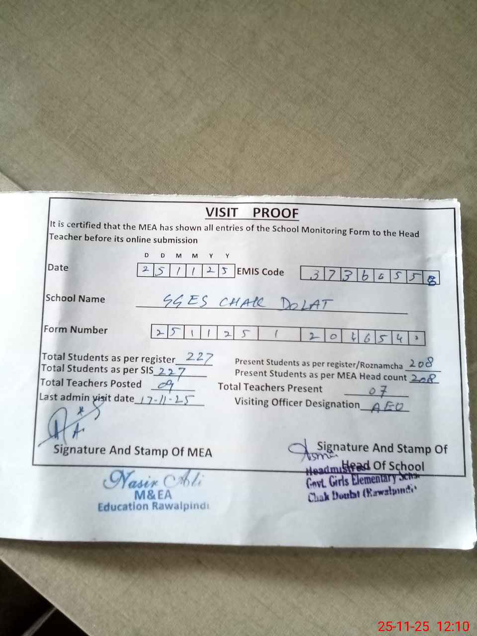 | EMIS Code: 37360558 | Name of School: GGES CHAK DOLAT | |||